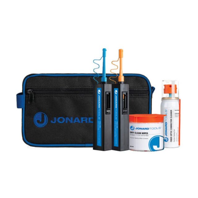 The Jonard Tools TK-182 Fiber Cleaning Kit offers cleaning products for use on 1.25mm and 2.5mm connector endfaces and bulkhead adapters. This kit contains products for either wet or dry cleaning of connectors providing flexibility and performance. The kit is enclosed in our newest H.20 Rugged Nylon Carrying Case and includes fiber cleaning fluid and wipes.